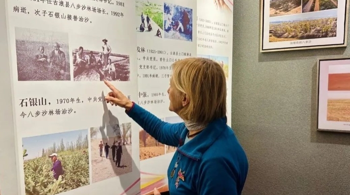 10月23日,“維娜絲路中國行”甘肅站活動走進武威。當天下午,意大利徒步旅行家維娜·卡瑪洛塔女士一行參觀了由甘肅文旅集團打造的八步沙“兩山”實踐創新基地。